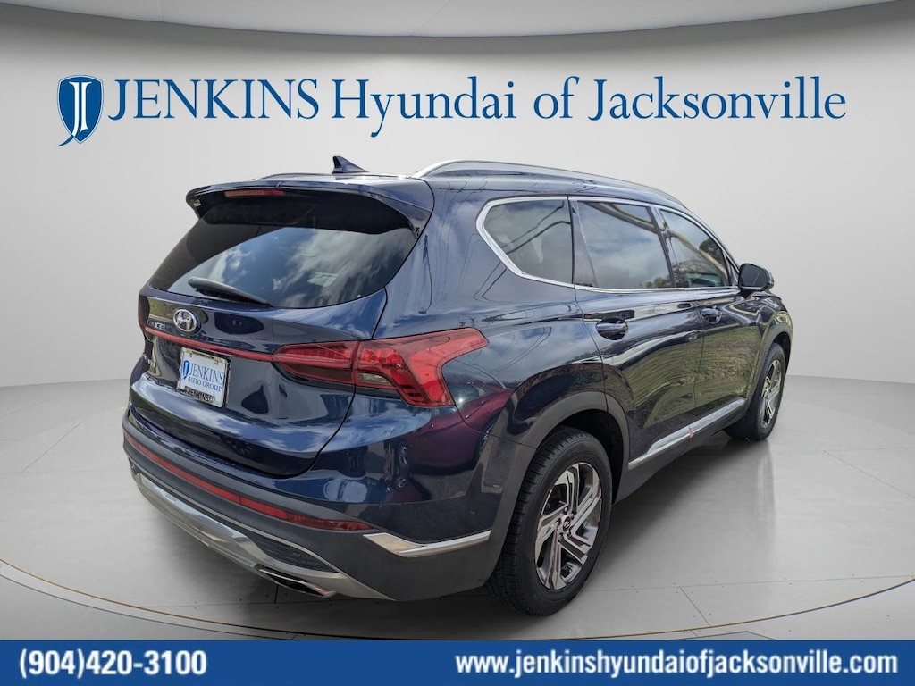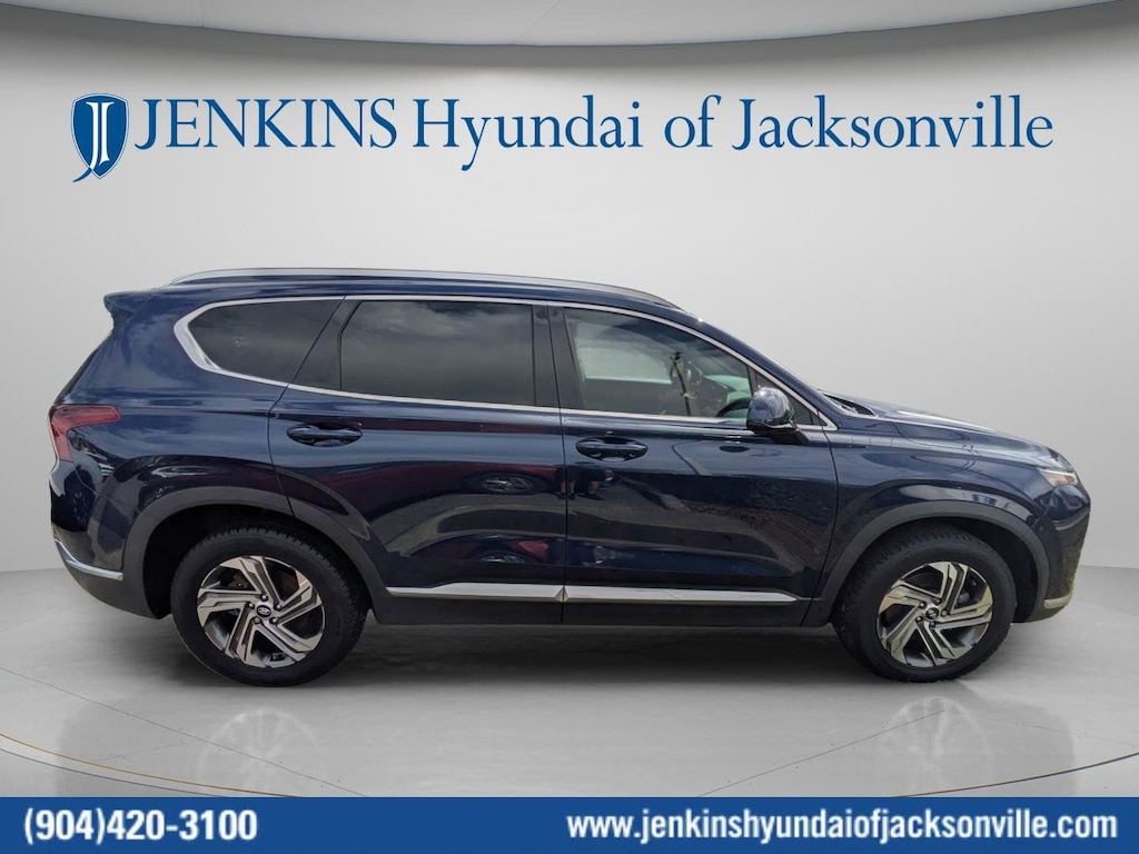 The price does not include tax, tag, license, an electronic filing fee of $449.00**, a private tag agency fee of $199.00**, and a predelivery service charge of $1199.00** **This charge represents costs and profit to the dealer for items such as inspecting, cleaning, and adjusting vehicles, as well as preparing documents related to the sale. * EPA-estimate metric: these are contingent on ideal conditions within a lab. Real-world situations such as carrying passengers or cargo, using climate control, driving style, and ambient temperatures can affect actual metrics. 25/28 City/Highway MPG CARFAX One-Owner. Clean CARFAX. This 2021 Hyundai Santa Fe SEL in Stormy Blue features Cargo Package (Cargo Net, Cargo Tray, and First Aid Kit), Option Group 01, 18" x 7.5J Alloy Wheels, 4-Wheel Disc Brakes, 6 Speakers, ABS brakes, Air Conditioning, Alloy wheels, AM/FM radio: SiriusXM, Apple CarPlay & Android Auto, Auto High-beam Headlights, Axle Ratio: 3.798, Brake assist, Bumper Applique, Bumpers: body-color, Cargo Cover/Screen, Carpeted Floor Mats, Delay-off headlights, Driver door bin, Driver vanity mirror, Dual front impact airbags, Dual front side impact airbags, Electronic Stability Control, Emergency communication system, Exterior Parking Camera Rear, Four wheel independent suspension, Front anti-roll bar, Front Bucket Seats, Front Center Armrest, Front reading lights, Fully automatic headlights, Heated door mirrors, Heated Front Bucket Seats, Heated front seats, Illuminated entry, Low tire pressure warning, Occupant sensing airbag, Outside temperature display, Overhead airbag, Overhead console, Panic alarm, Passenger door bin, Passenger vanity mirror, Power door mirrors, Power driver seat, Power steering, Power windows, Radio: AM/FM/MP3 Display Audio, Rear anti-roll bar, Rear seat center armrest, Rear window defroster, Rear window wiper, Remote keyless entry, Security system, Speed control, Speed-sensing steering, Split folding rear seat, Spoiler, Steering wheel mounted audio controls, Tachometer, Telescoping steering wheel, Tilt steering wheel, Traction control, Trip computer, Variably intermittent wipers, and YES Essentials Stain-Resistant Cloth Seat Trim . Visit our showroom 24/7 at Jenkinshyundaiofjacksonville or call 904-420-3100. FWD