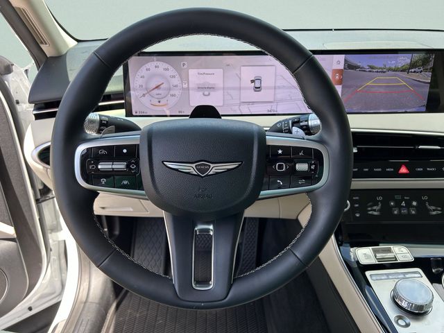 This vehicle comes equipped with Option Group 01, 4-Wheel Disc Brakes, 9 Speakers, ABS brakes, Air Conditioning, Alloy wheels, AM/FM radio: SiriusXM, Android Auto & Apple CarPlay, Anti-whiplash front head restraints, Auto High-beam Headlights, Auto-dimming Rear-View mirror, Automatic temperature control, Brake assist, Bumpers: body-color, Cargo Cover, Cargo Net, Delay-off headlights, Driver door bin, Driver vanity mirror, Dual front impact airbags, Dual front side impact airbags, Electronic Stability Control, Emergency communication system: Genesis Connected Services, Exterior Parking Camera Rear, First Aid Kit, Four wheel independent suspension, Front anti-roll bar, Front Bucket Seats, Front Center Armrest w/Storage, Front dual zone A/C, Front reading lights, Fully automatic headlights, Garage door transmitter: HomeLink, Heated door mirrors, Heated Front Bucket Seats, Heated front seats, Illuminated entry, Knee airbag, Leather steering wheel, Leatherette Seating Surfaces, Low tire pressure warning, Navigation System, Occupant sensing airbag, Outside temperature display, Overhead airbag, Overhead console, Panic alarm, Passenger door bin, Passenger vanity mirror, Power door mirrors, Power driver seat, Power Liftgate, Power passenger seat, Power steering, Power windows, Radio: 14.5" Navigation System with AM/FM/HD, Rain sensing wipers, Rear anti-roll bar, Rear reading lights, Rear seat center armrest, Rear window defroster, Rear window wiper, Remote keyless entry, Roof Rack Cross Bars, Security system, Speed control, Speed-sensing steering, Speed-Sensitive Wipers, Split folding rear seat, Spoiler, Steering wheel mounted audio controls, Tachometer, Telescoping steering wheel, Traction control, Trip computer, Turn signal indicator mirrors, Up Seatback Cargo Mat, Variably intermittent wipers, and Wheels: 19" Light Hyper Silver Alloy . Odometer is 631 miles below market average! 20/28 City/Highway MPG