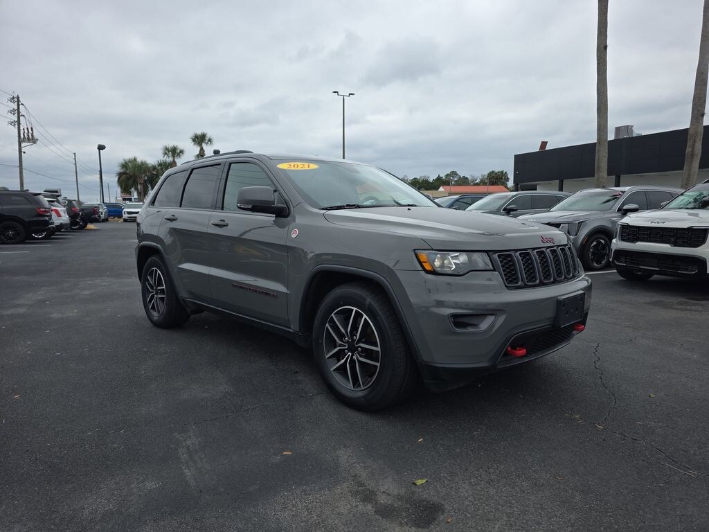 EPA-estimate metric: these are contingent on ideal conditions within a lab. Real-world situations such as carrying passengers or cargo, using climate control, driving style, and ambient temperatures can affect actual metrics. The price does not include tax, tag, license, an electronic filing fee of $449.00**, a private tag agency fee of $199.00**, and a predelivery service charge of $1199.00** **This charge represents costs and profit to the dealer for items such as inspecting, cleaning, and adjusting vehicles, as well as preparing documents related to the sale. * 18/25 City/Highway MPG TEXT OR CALL 407-715-4652 NOW TO GET IN TOUCH WITH PEDRO CARO IN SALES *SE HABLA ESPANÌOL*, TEXT OR CALL 352-470-3906 NOW TO GET IN TOUCH WITH KARL DEJEAN IN SALES, 4WD, GPS Navigation, Navigation System, Panic alarm, Quick Order Package 2BJ, Security system. Sting-Gray Clearcoat 2021 Jeep Grand Cherokee Trailhawk 4WD 8-Speed Automatic 3.6L V6 24V VVT