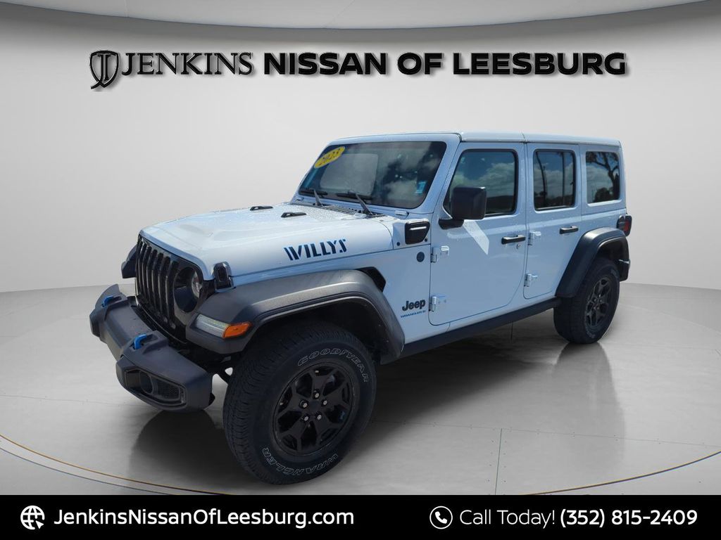 Own the trail and the city with the 2024 Jeep Wrangler Willys 4xe, a plug-in hybrid that blends iconic rugged capability with modern efficiency. Featuring a 49 MPGe, 375 horsepower, and a rear locking differential, this electrified SUV offers 33-inch tires, LED lighting, and silent all-electric off-roading., 2.0L I4 DOHC, 4xe 4-Wheel Drive Swing Gate Decal, Anti-Spin Differential Rear Axle, Automatic temperature control, Black Grille, Convenience Group, Front fog lights, Front LED Fog Lamps, Fully automatic headlights, LED Headlamp & Fog Lamp Group, LED Premium Reflector Headlamps, Molded-In-Color Fender Flares (2-Piece), MOPAR All-Weather Floor Mats, ParkView Rear Back-Up Camera, Quick Order Package 29W Willys, Remote keyless entry, Steering wheel mounted audio controls, Universal Garage Door Opener, Wheels: 17" x 7.5" Black Aluminum, Willys, Willys 4xe Hood Decal. Enjoy Peace of Mind with Jenkins Nissan of Homosassa's EXCLUSIVE NATIONWIDE LIFETIME UNLIMITED MILEAGE WARRANTY! (See dealer for details, year and mileage limits apply). The price does not include tax, tag, license, an electronic filing fee of $449.00**, a private tag agency fee of $199.00**, and a predelivery service charge of $1199.00** **This charge represents costs and profit to the dealer for items such as inspecting, cleaning, and adjusting vehicles, as well as preparing documents related to the sale. * EPA-estimate metric: these are contingent on ideal conditions within a lab. Real-world situations such as carrying passengers or cargo, using climate control, driving style, and ambient temperatures can affect actual metrics. Clean CARFAX. CARFAX One-Owner.