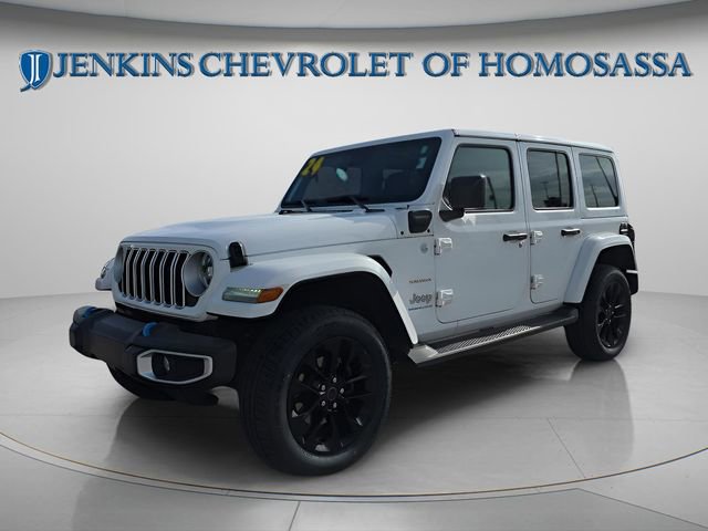 This vehicle comes equipped with Quick Order Package 29P Sahara, 2.0L I4 DOHC, 12.3 Touchscreen Display, 3.73 Rear Axle Ratio, 4-Wheel Disc Brakes, 4G LTE Wi-Fi Hot Spot, 8 Speakers, ABS brakes, Air Conditioning, Alloy wheels, AM/FM radio: SiriusXM, Apple CarPlay, Apple CarPlay/Android Auto, Automatic temperature control, Body Color 3-Piece Hard Top, Brake assist, Cloth Low-Back Bucket Seats, Compass, Connectivity - US/Canada, Delay-off headlights, Disassociated Touchscreen Display, Driver door bin, Driver vanity mirror, Dual front impact airbags, Dual front side impact airbags, Electronic Stability Control, Emergency communication system: Jeep Connect, Freedom Panel Storage Bag, Front anti-roll bar, Front Bucket Seats, Front Center Armrest w/Storage, Front dual zone A/C, Front fog lights, Front reading lights, Fully automatic headlights, Google Android Auto, Heated door mirrors, Heated front seats, Heated steering wheel, Illuminated entry, Integrated Center Stack Radio, Integrated roll-over protection, Integrated Voice Command w/Bluetooth, Low tire pressure warning, No Soft Top, Occupant sensing airbag, Outside temperature display, Overhead airbag, Panic alarm, ParkView Rear Back-Up Camera, Passenger door bin, Passenger vanity mirror, Power door mirrors, Power steering, Power windows, Radio data system, Radio: Uconnect 5 w/12.3 Display, Rear anti-roll bar, Rear reading lights, Rear seat center armrest, Rear Window Defroster, Rear Window Wiper/Washer, Remote keyless entry, Security system, Speed control, Split folding rear seat, Sport Suspension, Steering wheel mounted audio controls, Tachometer, Telescoping steering wheel, Tilt steering wheel, Traction control, Trip computer, Variably intermittent wipers, Voltmeter, and Wheels: 20 x 8 Painted Black Aluminum . Jenkins Chevrolet of Homosassa proudly serving Homosassa, Spring Hill, Hernando, Crystal River, Beverly Hills, Inverness. Just a half hour North of Buccaneer Bay. Come see the large, expansive inventory of the Jenkins Auto Group. 2.0L I4 DOHC. CARFAX One-Owner. Bright White Clearcoat 2024 Jeep Wrangler Sahara 4xe 4WD 8-Speed Automatic 2.0L I4 DOHCRecent Arrival! Odometer is 1979 miles below market average!The price does not include tax, tag, license, an electronic filing fee of $449.00**, a private tag agency fee of $199.00**, and a predelivery service charge of $1199.00** **This charge represents costs and profit to the dealer for items such as inspecting, cleaning, and adjusting vehicles, as well as preparing documents related to the sale. * EPA-estimate metric: these are contingent on ideal conditions within a lab. Real-world situations such as carrying passengers or cargo, using climate control, driving style, and ambient temperatures can affect actual metrics.